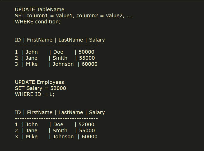 이렇게 하고 실행하면 kim이라는 이름을 가진 학생의 국어 점수가 80점에서 100점으로 업데이트 된다.